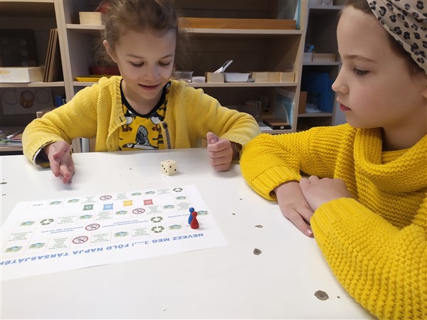 Beszéltünk ezen kívül a szelektív hulladékgyűjtés fontosságáról, annak szabályairól és gyakoroltuk a helyes tárolóedények megválasztását. A gyerekek egy társasjátékot játszva tehették próbára tudásukat a hulladékgyűjtéssel kapcsolatban.