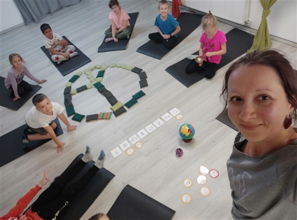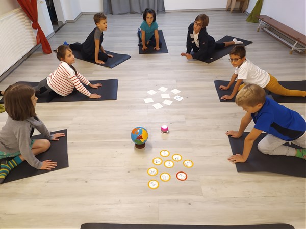 A béke szimbólumait megbeszélve különböző mozgásos feladatokat hajtottak végre a gyerekek, illetve jógapózokat gyakoroltak. A páros és a csoportos gyakorlatokban erősödött az egymást segíteni akarás és a közösségi szellem. Az egyéni gyakorlatok során erősebbek, nyugodtabban lettünk. Az óra relaxálással, színezéssel zárult.